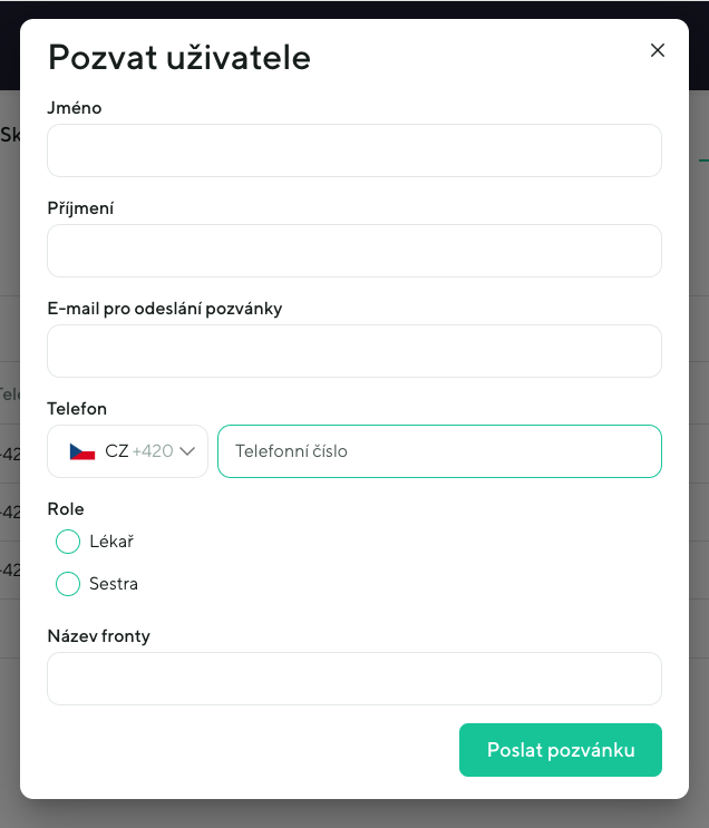 Nyní můžete další uživatele přidat pomocí tlačítka Pozvat uživatele a vyplněním údajů: