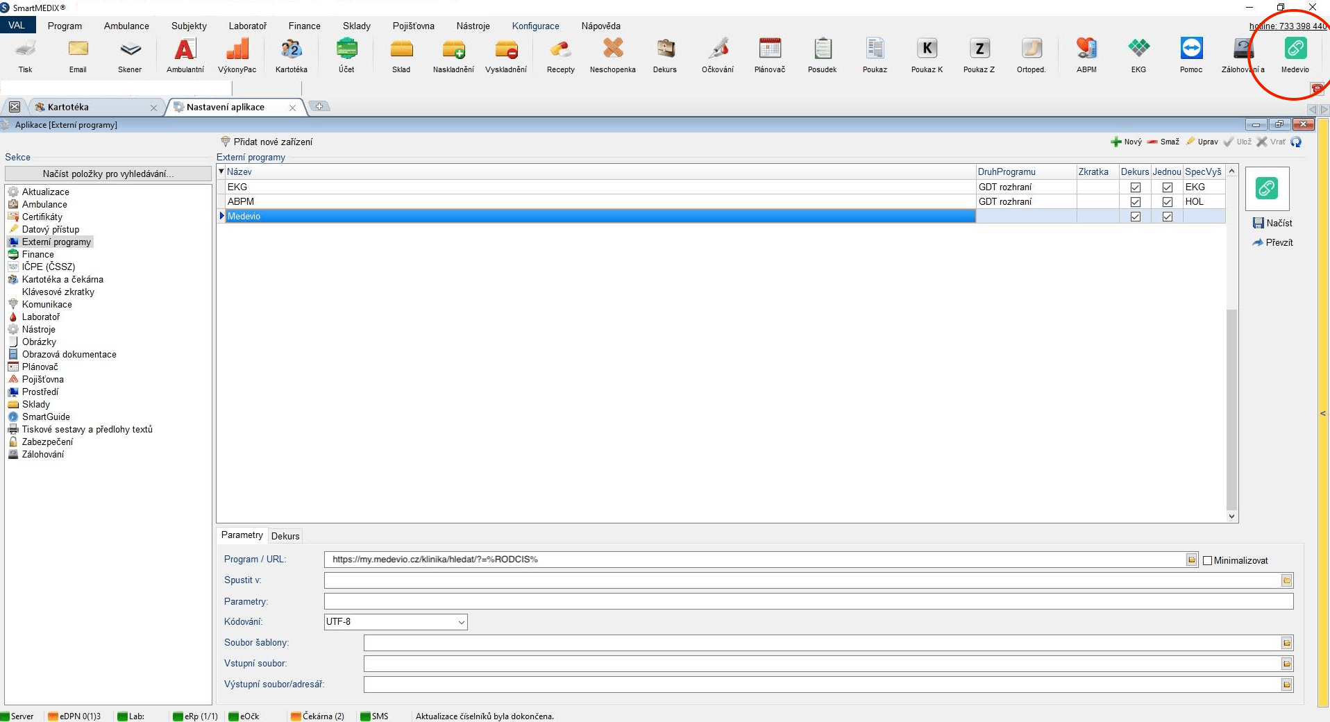 Do "Program / URL" vložte link, která jste si zkopírovali v Medevio. Kódování zvolte "UTF-8".